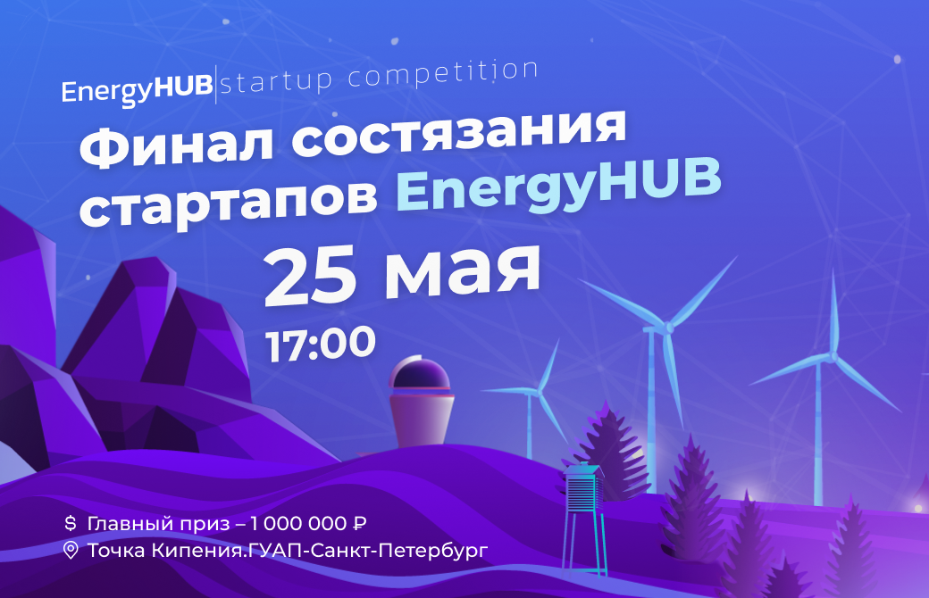 25 мая с 17:00 до 19:00 в региональном пространстве коллективной работы «Точка кипения – Санкт-Петербург. ГУАП» пройдёт очный финал состязания стартапов EnergyHUB.