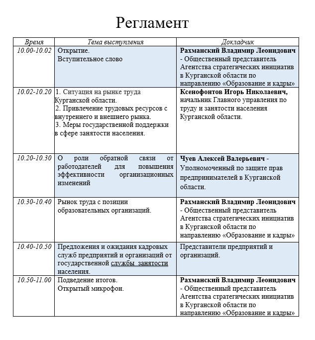 Онлайн мероприятие «Эффективный кадровый сервис»: На мероприятии будут обсуждаться вопросы привлечения трудовых ресурсов с внутреннего и внешнего рынка, ситуация на рынке труда Курганской области; актуализирована информация о мерах государственной поддержки в сфере занятости населения, а также поднят вопрос о роли обратной связи от работодателей для повышения эффективности организационных изменений.
