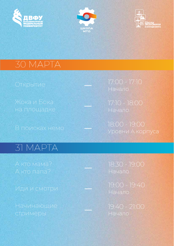 30 March 2022, 16:00 — 31 March 2022, 22:00 Vladivostok time