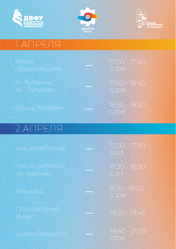 - Хей! Видел те неоновые кубы в подслушке ДВФУ? А может у твоих друзей есть крутые фотки на фоне неоновых рамок? Если хочешь создавать нечто подобное для оформления мероприятий, то скорее записывайся на Школу МТО! Мы научим тебя работать со звуком и светом, вести трансляции, а также продумывать и воплощать в жизнь площадки к различным ивентам. Также ты не только получишь теоретические знания, но и сможешь пройти практику на одном из мероприятий. Так что смело регистрируйся!