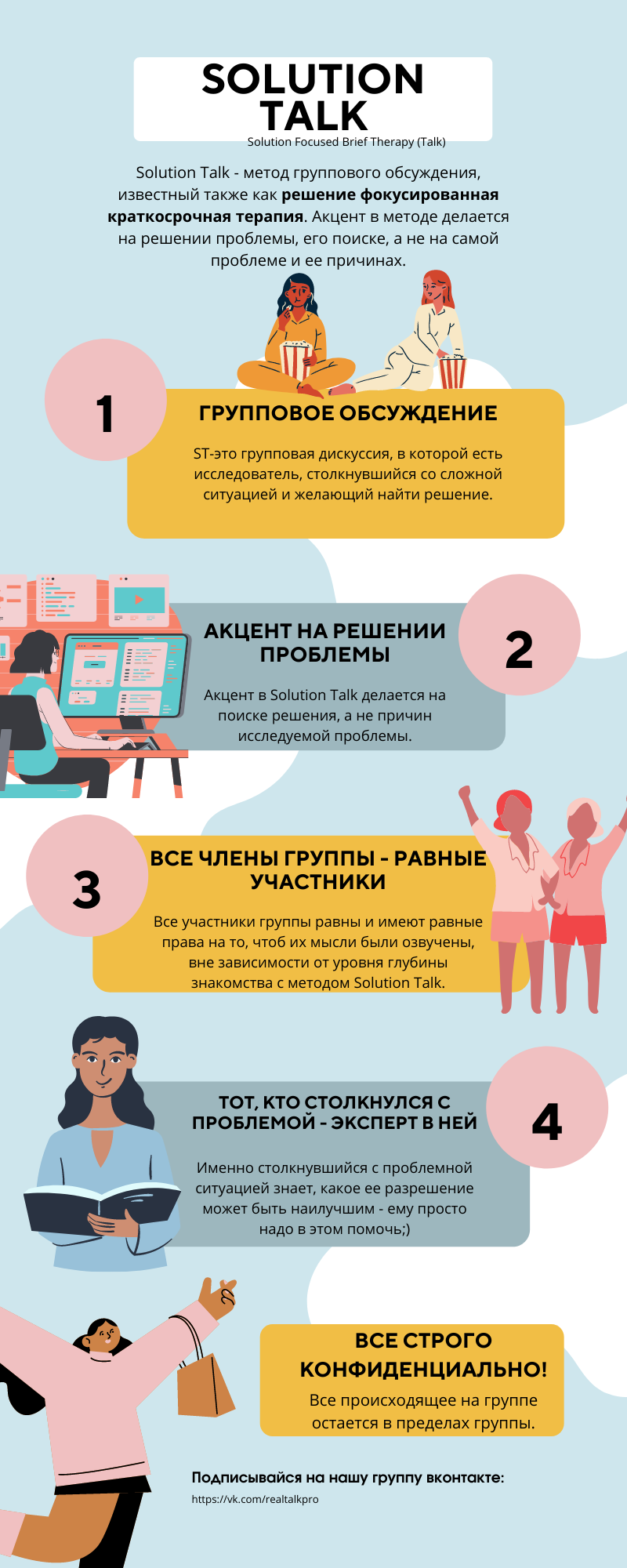 Приглашаем тебя на нашу встречу мы называем её Solution talk(ST)! ST-это групповая дискуссия, где есть исследователь,который столкнулся с сложной ситуацией и хочет найти решение. Для этого мы и собираемся вместе :)