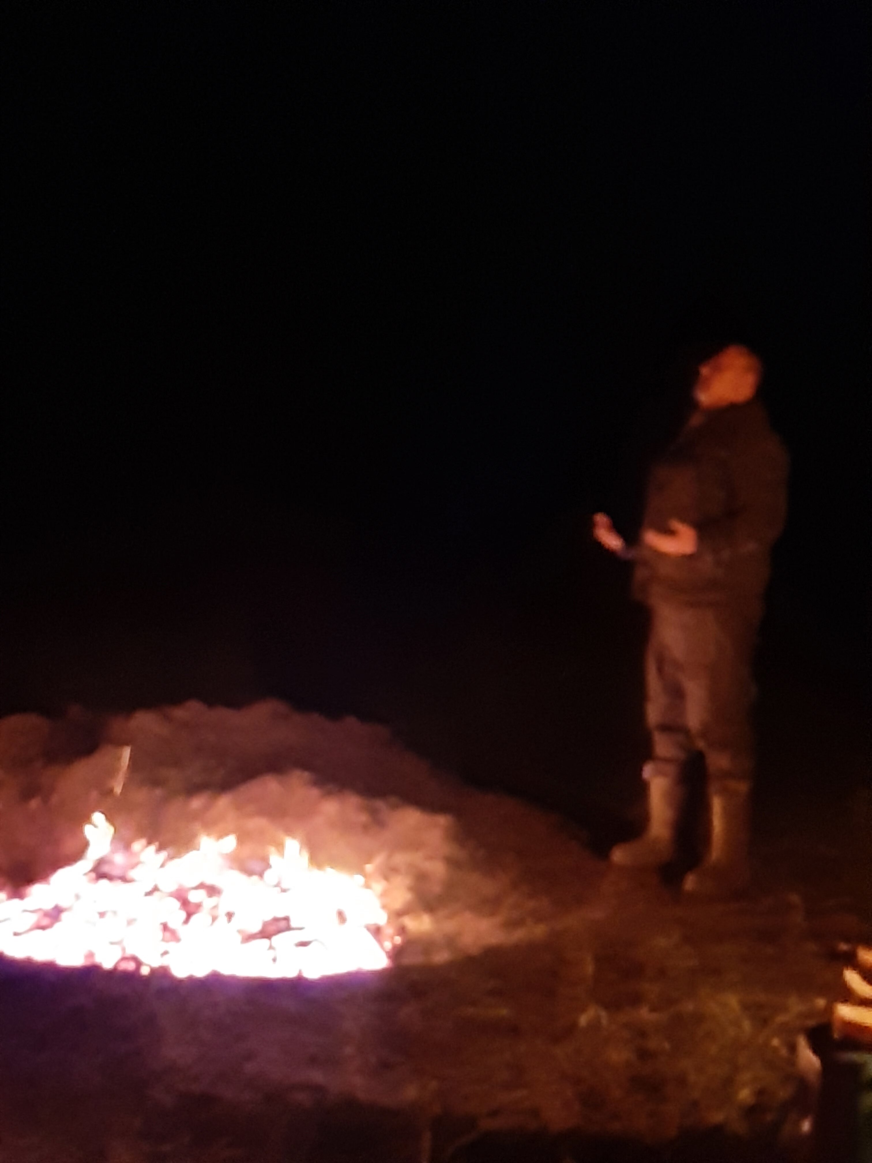 Затем следует медитативный процесс внутреннего диалога с собой и с костром, когда он прогорает и превращается в угли. Затем, когда угли рассыпают по тропе, участники, выстроившись в ряд – каждый со своими желаниями, просьбами, целями делает шаг на тропу и проходит ее – выходя через символические ворота в новую жизнь.