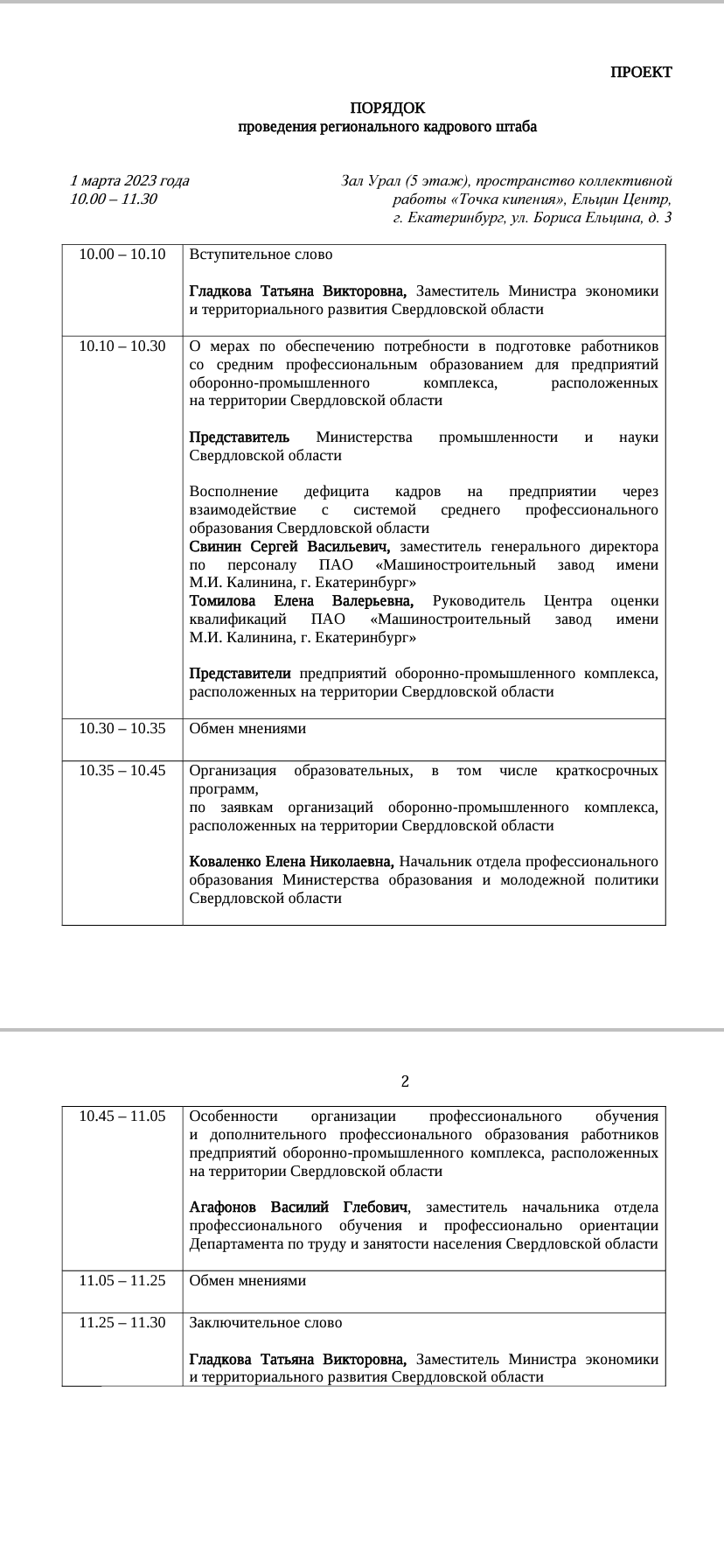 1 March 2023, from 10:00 to 12:00 Yekaterinburg time