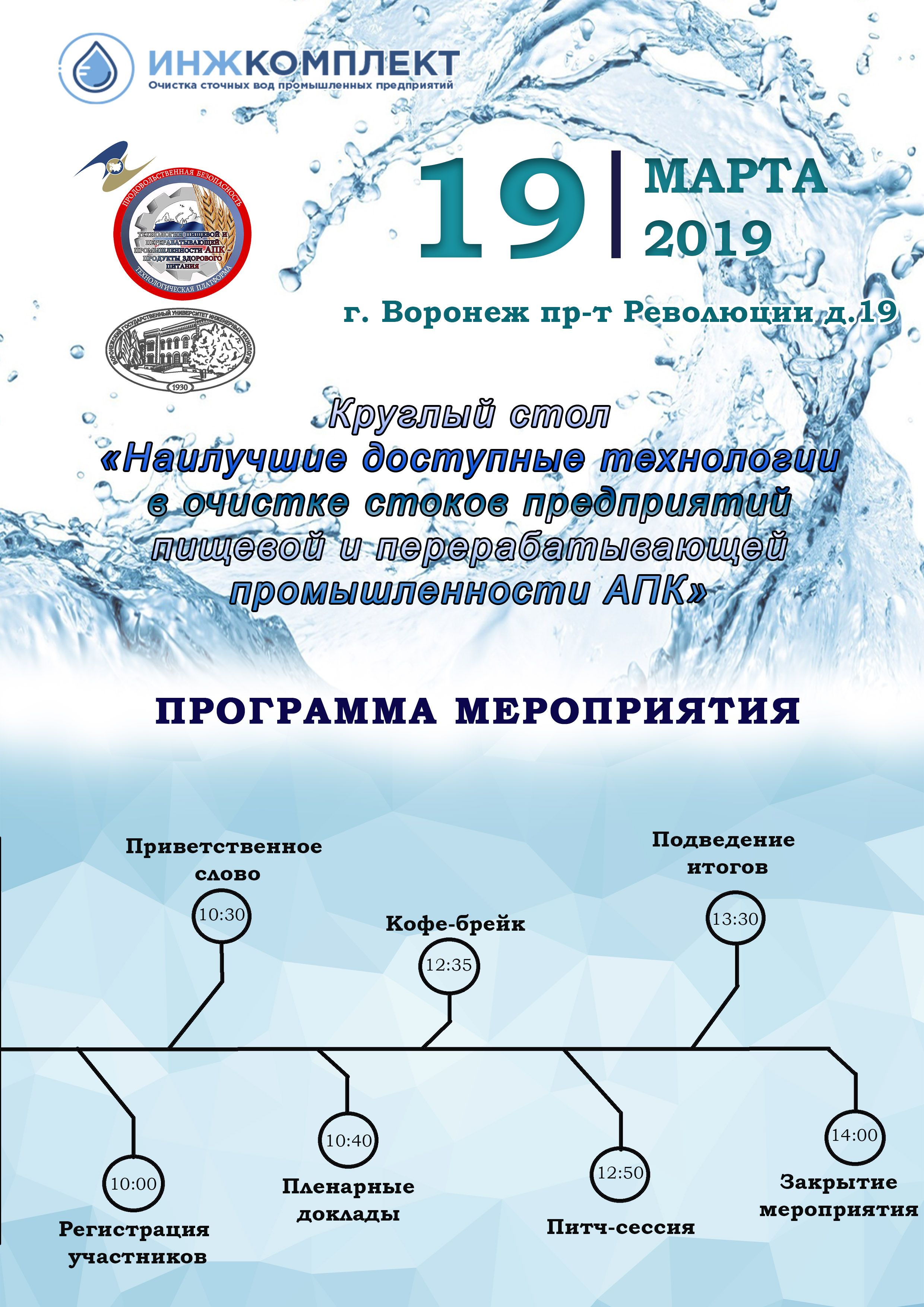 круглом столе «Наилучшие доступные технологии в очистке стоков предприятий пищевой и перерабатывающей промышленности АПК» в рамках реализации Евразийской технологической платформы «Технологии пищевой и перерабатывающей промышленности АПК – продукты здорового питания», который состоится 19 марта 2019 года в 1000 по адресу: