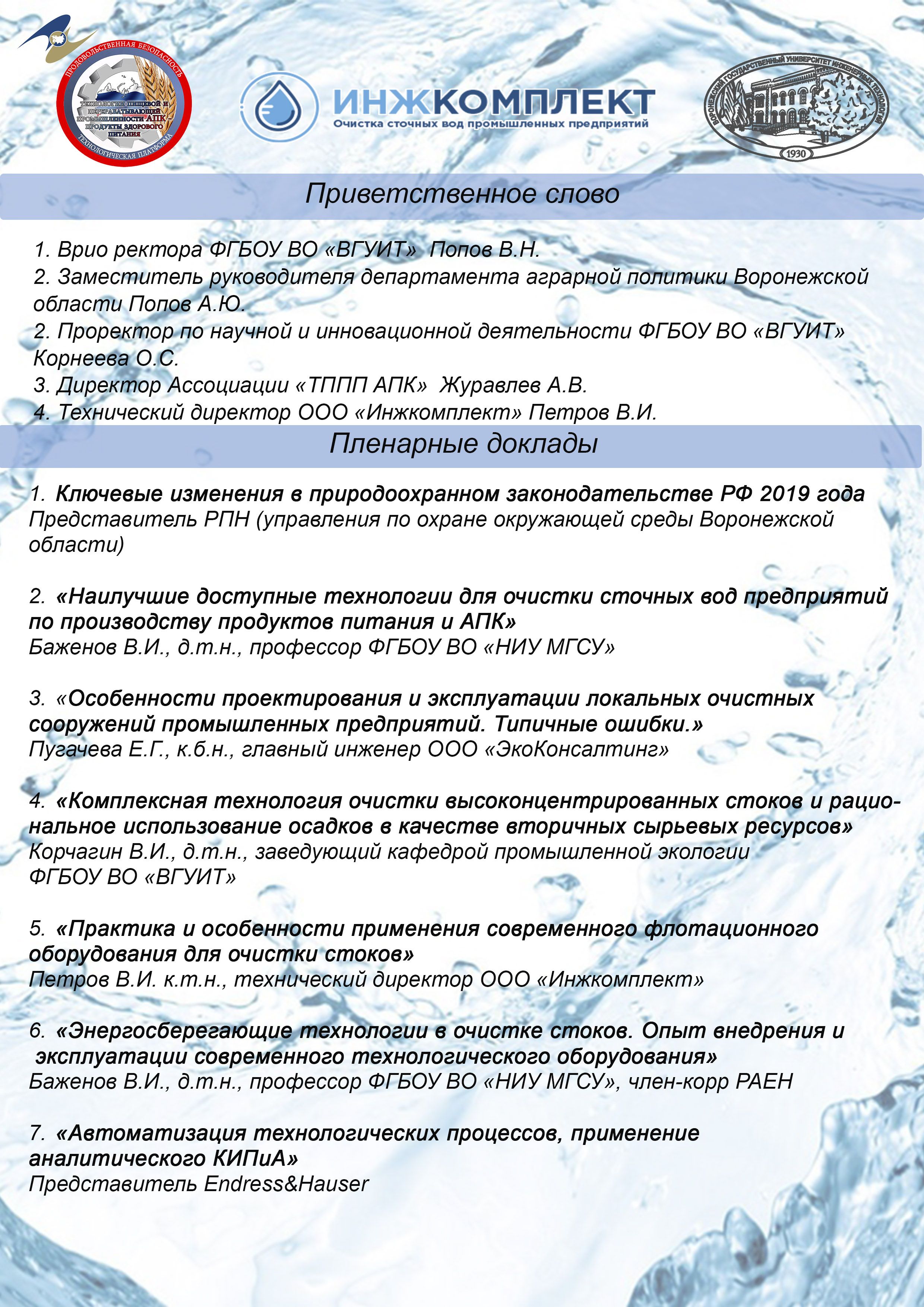 – наилучшие доступные технологии для очистки сточных вод предприятий по производству продуктов питания и АПК;