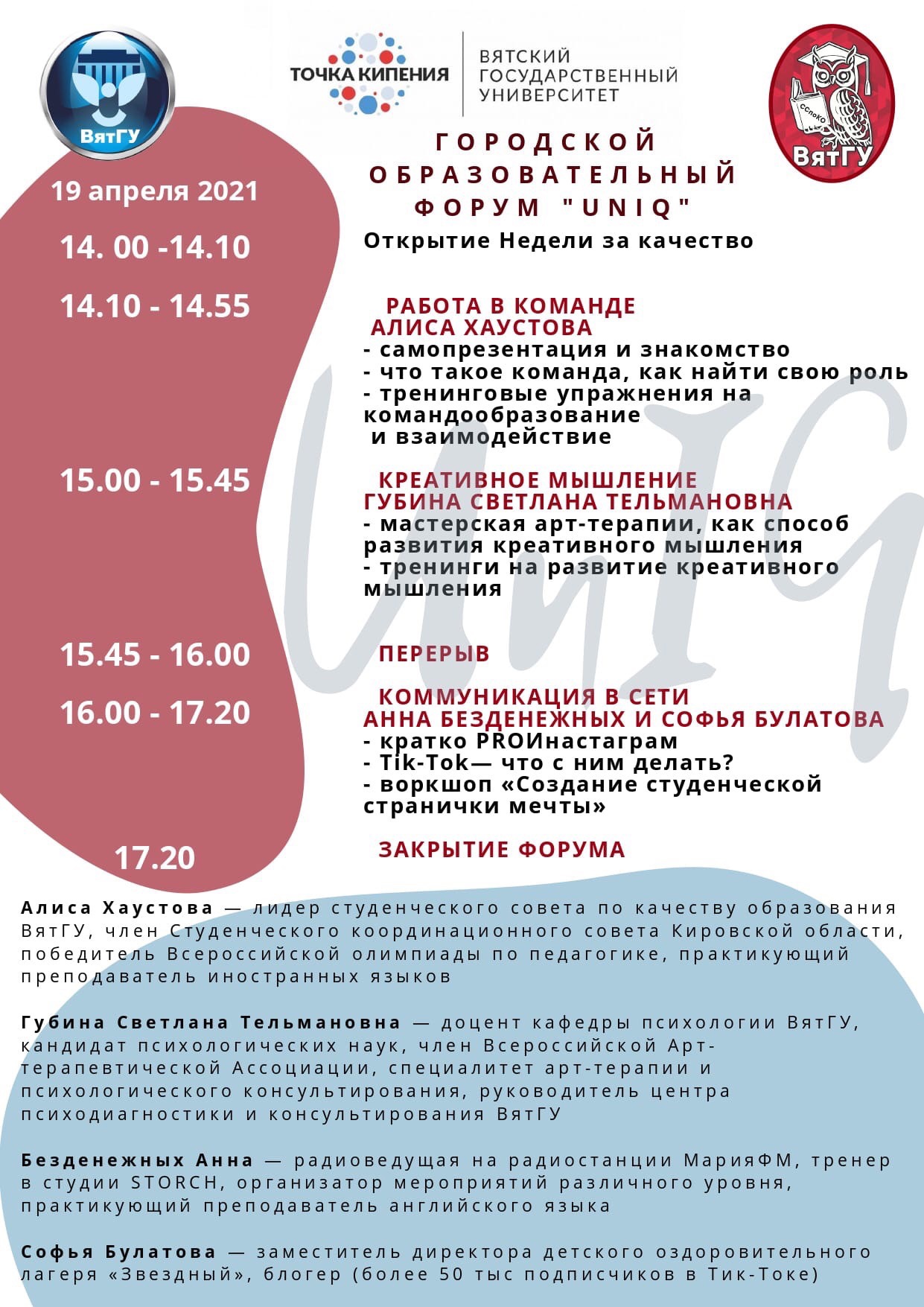 Городской образовательный форум "UniQ" в рамках "Недели за качествО - 2021"