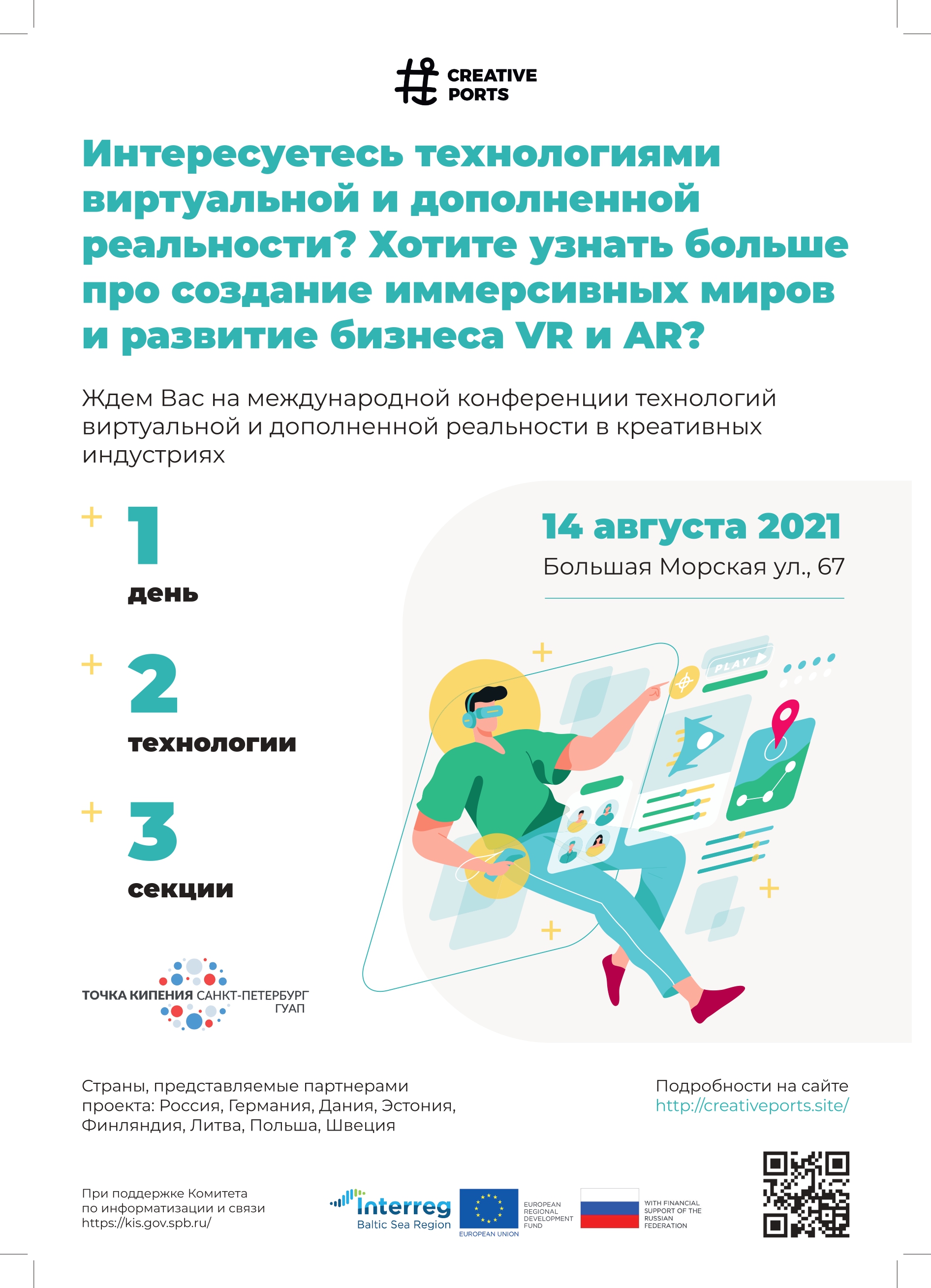 Конференция пройдет 14 августа в Санкт-Петербурге в рамках международного проекта «Креативные индустрии – интернационализация культурных и креативных индустрий в регионе Балтийского моря» R083, Creative Ports), Программа трансграничного сотрудничества "Интеррег. Регион Балтийского моря" 2014-2020.