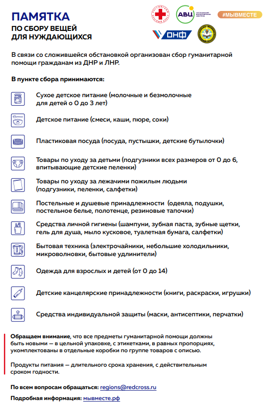 Сбор помощи работает с 14 до 17 часов с понедельника по пятницу по адресу: Точка кипения МАОУ «Средняя школа №45» ПКГО (ул. Якорная, 11).