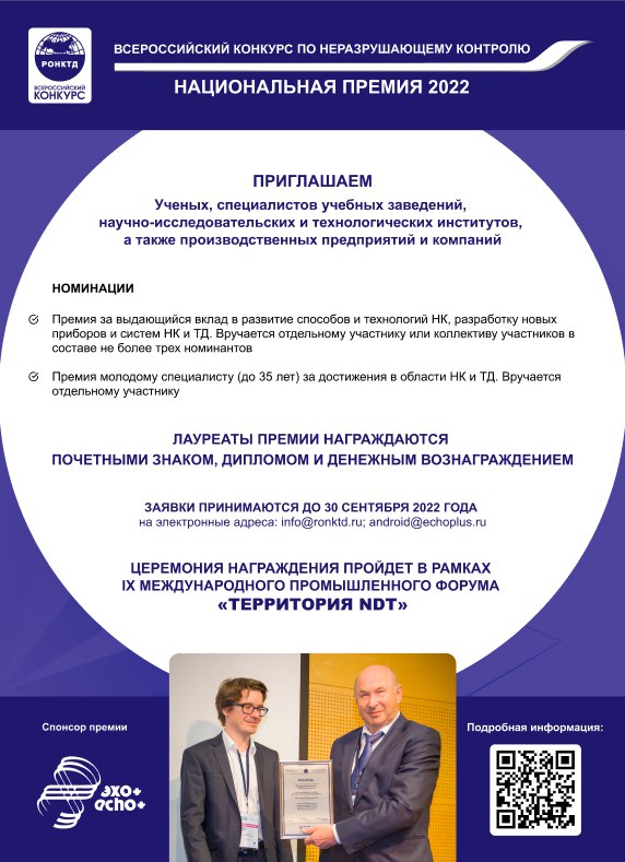 Международный промышленный Форум ТЕРРИТОРИЯ NDT является ведущей в России и СНГ отраслевой площадкой для продуктивного диалога заинтересованных сторон и демонстрации новейших достижений и разработок в области неразрушающего контроля, технической диагностики, мониторинга состояния и оценки ресурса.