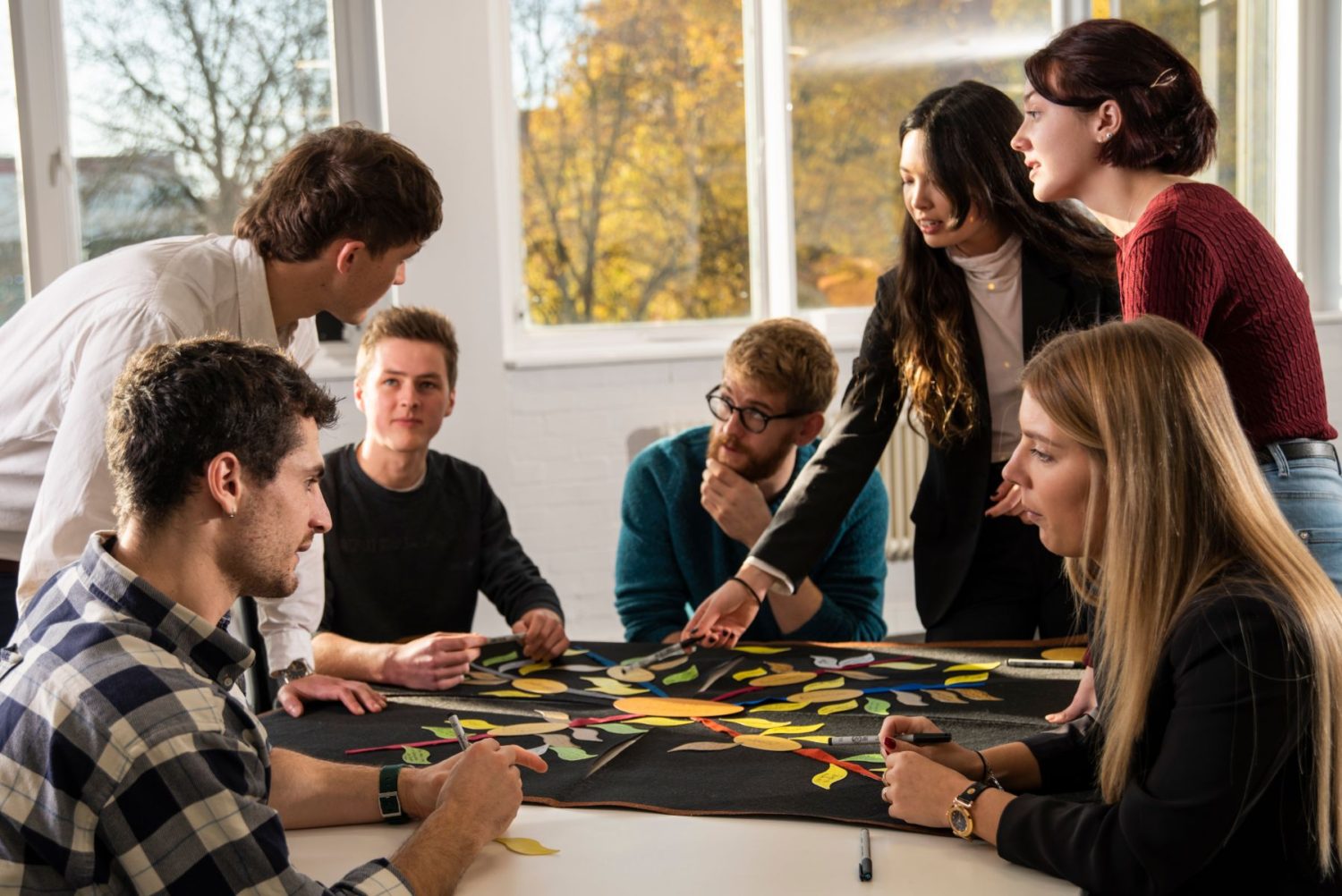 Сам по себе инструмент в сумке очень необычный. Участники пишут идеи на пластиковых листочках разного цвета и фиксируют их на войлоке. Каждый цвет означает природное явление – почву, рост, гниение и цветение. Сам инструмент очень экологичный, так как все листочки можно помыть и использовать сколько угодно раз.