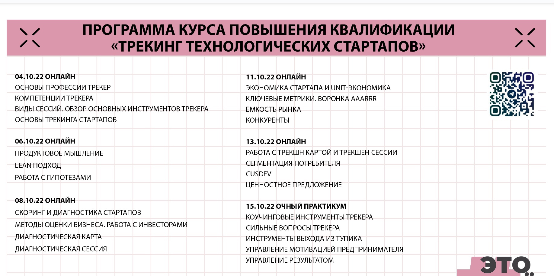 Трекер – это специалист, который способствует кратному росту стартапа, работая со слабыми местами проекта. Именно он направляет команду и оперативно повышает необходимые ей компетенции.Курс пройдет с 4 по 15 октября в смешанном формате: 5 дней образовательных лекций состоятся онлайн, а завершится обучение очным тренингом.