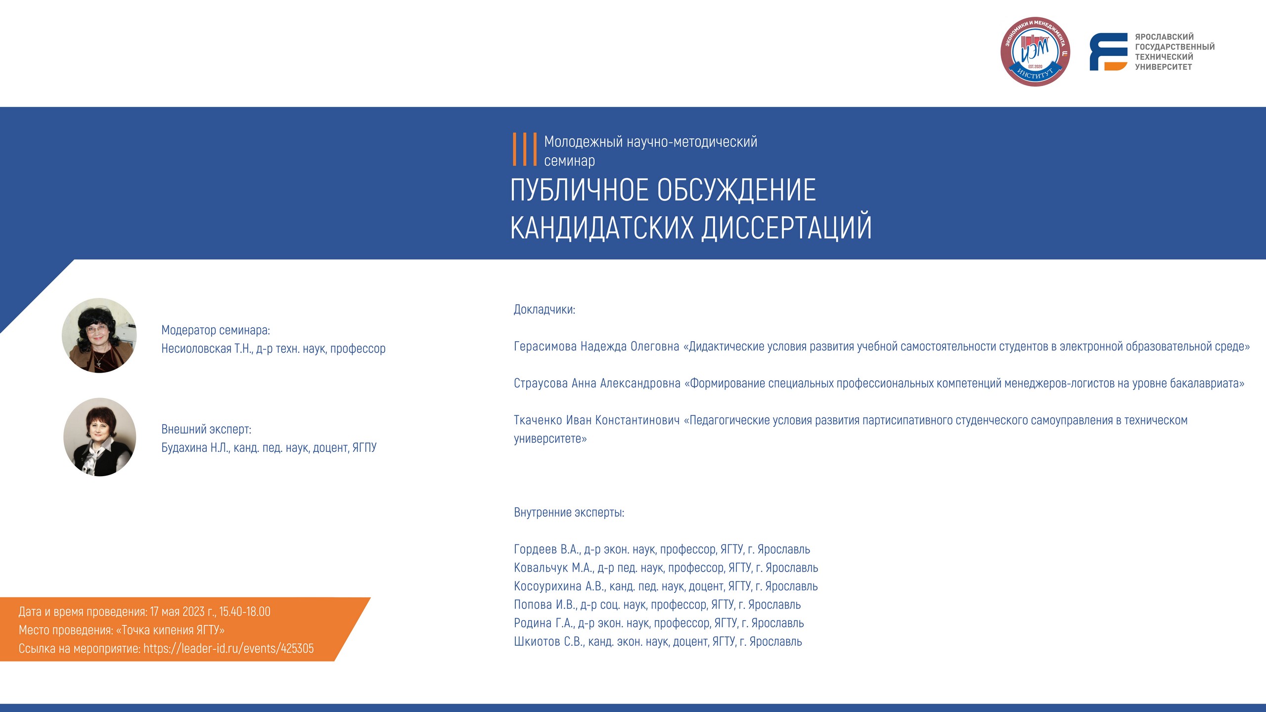- Ткаченко Иван Константинович «Педагогические условия развития партисипативного студенческого самоуправления в техническом университете»