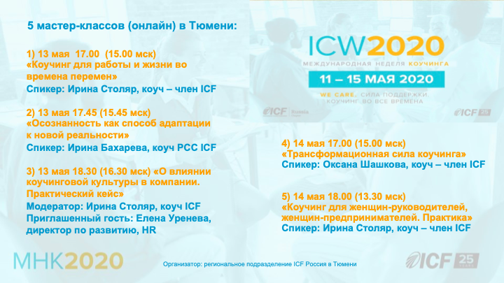 МЕЖДУНАРОДНАЯ НЕДЕЛЯ КОУЧИНГА В ТЮМЕНИ 13-14 мая 2020