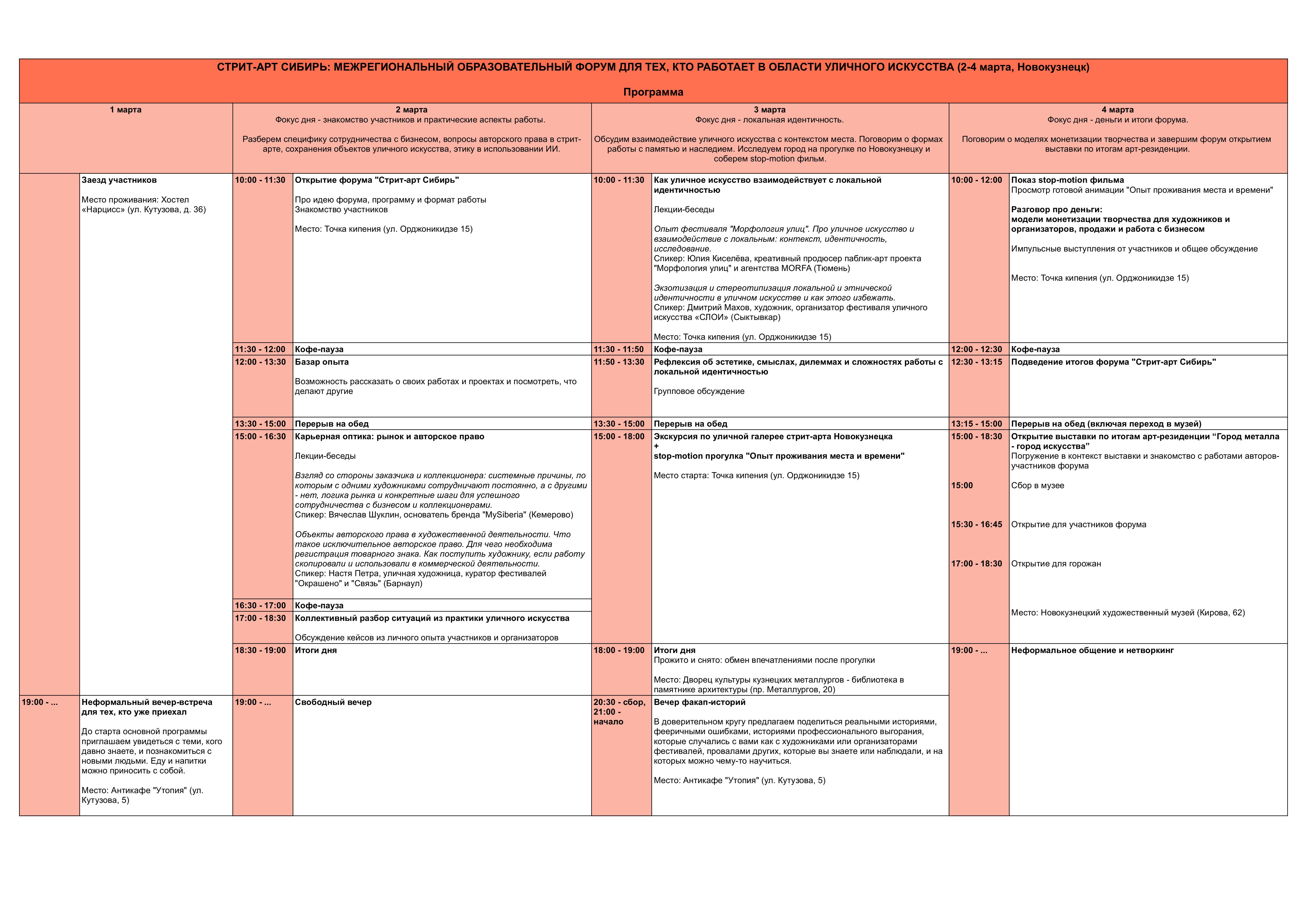 Познакомиться с программой форума можно на сайте: https://streetartsiberia.tilda.ws/