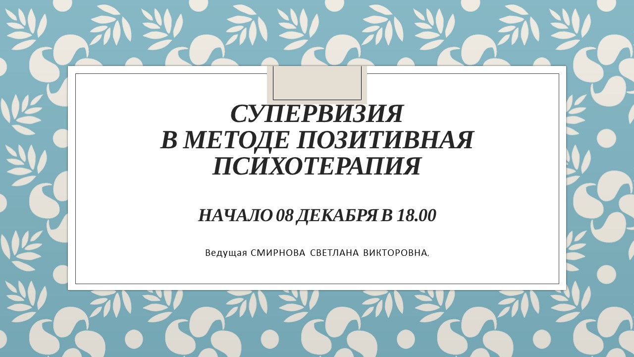 Будем рады Вас видеть на супервизорской встрече в методе позитивная психотерапия!