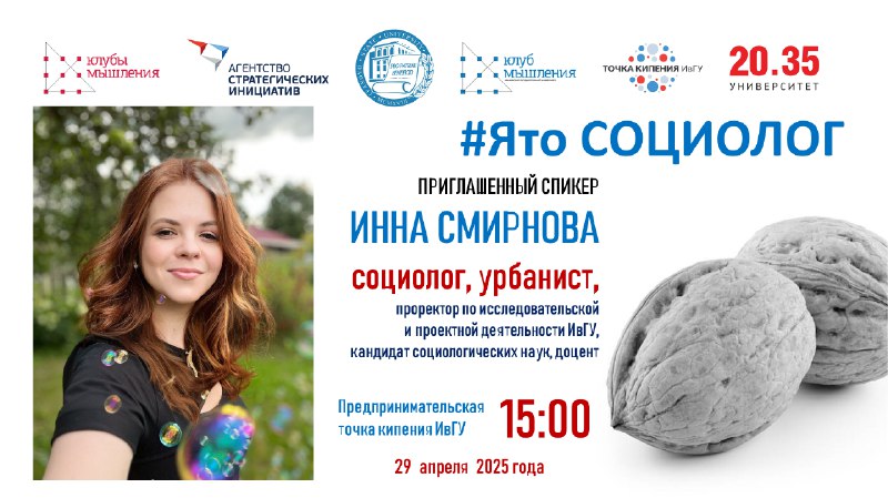 29 апреля (во вторник) Клуб мышления #Ято вновь открывает двери для всех любителей системного подхода. В гостях Клуба мышления ИвГУ проректор по исследовательской и проектной деятельности ИвГУ, социолог Инна Смирнова.